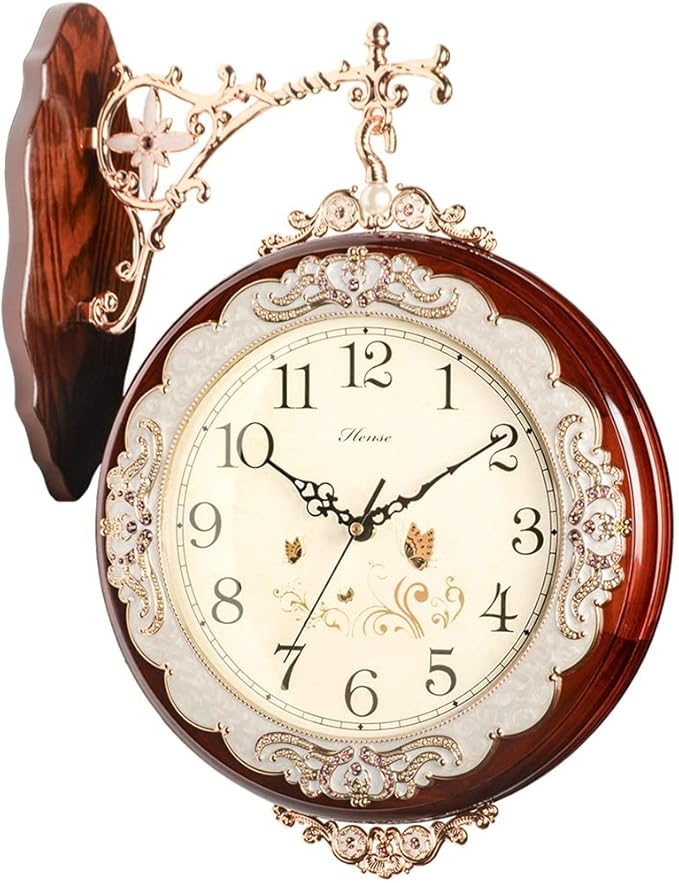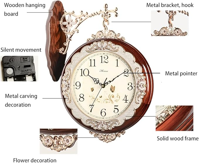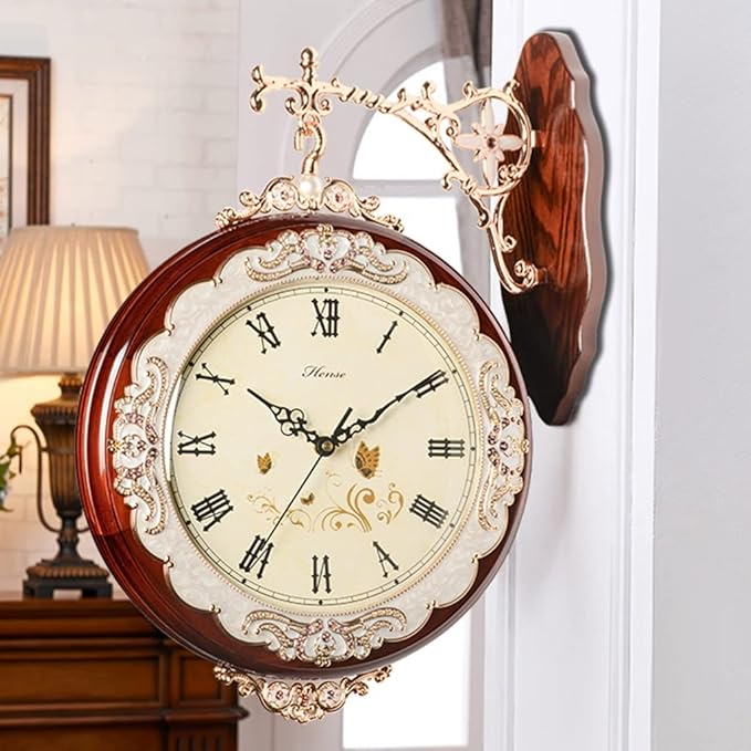 ساعة حائط دوارة 360 درجة، ساعة على الطراز الأوروبي مع الوقت على كلا الجانبين، ساعة حائط 25 سم