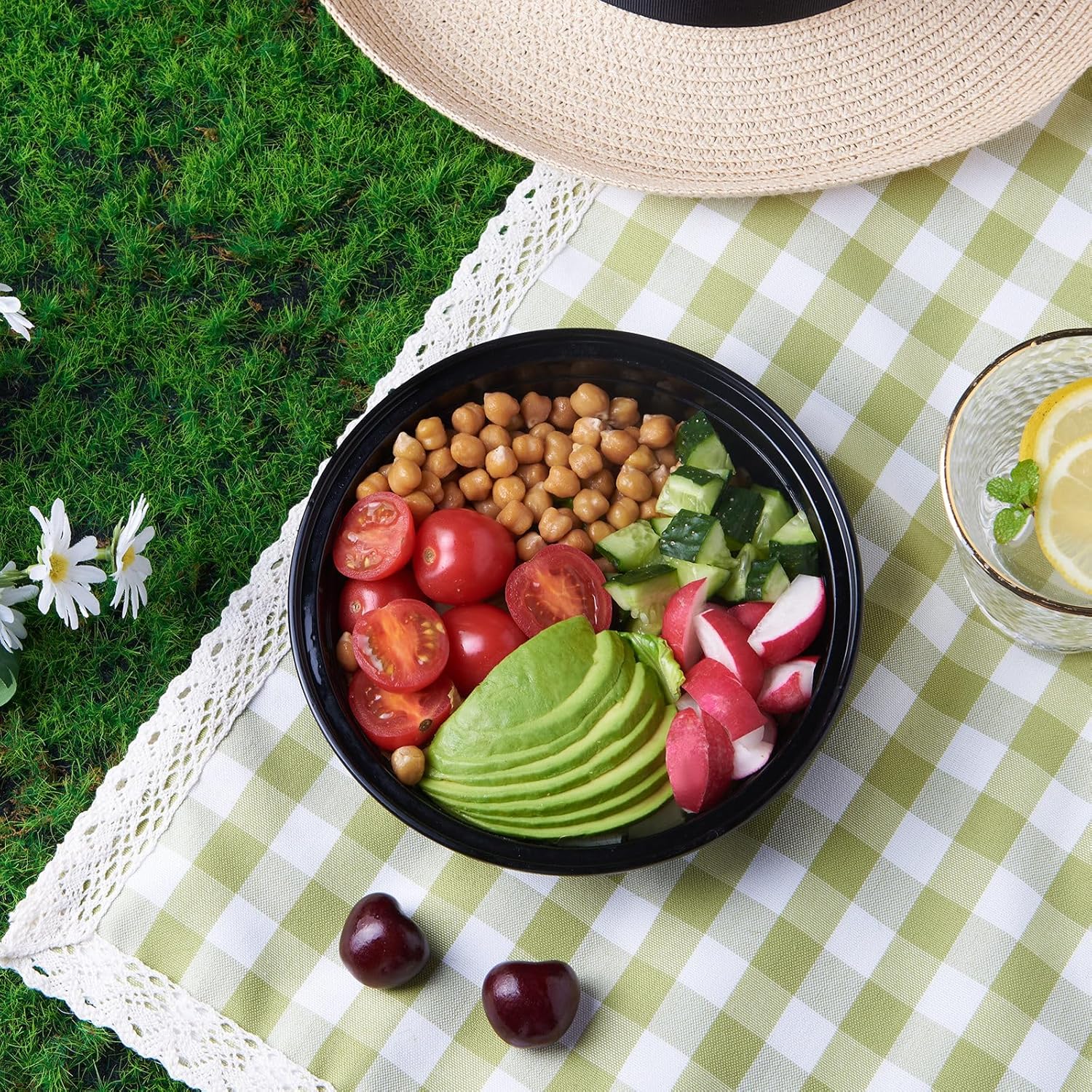 حاويات تخزين طعام دائرية مع أغطية لتخزين الطعام، صندوق بلاستيكي لخطة الغداء، أوعية طعام خارجية للاستخدام مرة واحدة، أسود، خالي من مادة BPA، قابل لإعادة الاستخدام، متين، قابل للتكديس، ميكروويف