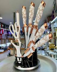 - • مجموعة سكاكين ذهبية فريدة من نوعها من شركة بروفيشنال شيف