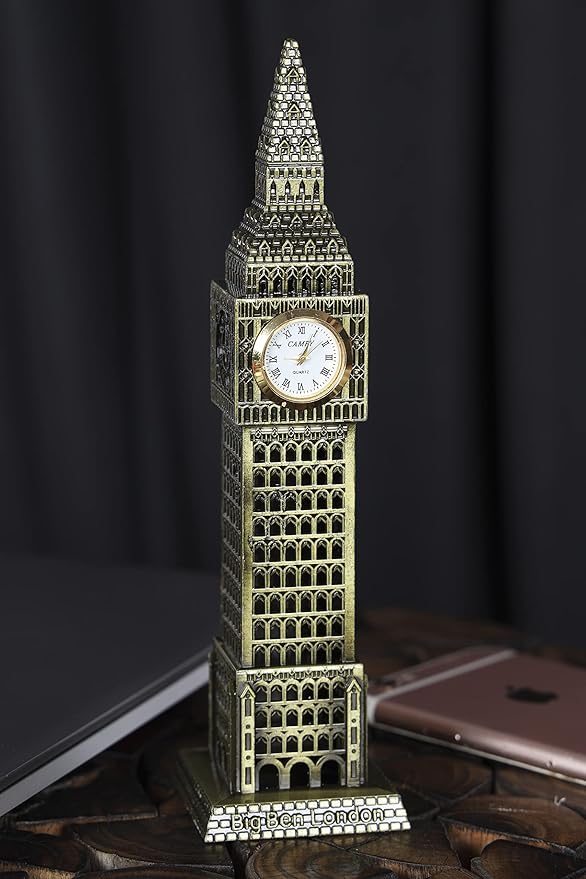 تمثال معدني مطلي بالذهب لساعة برج لندن بيج بن، تحفة فنية رائعة للمنزل والمكتب | ديكور الطاولة