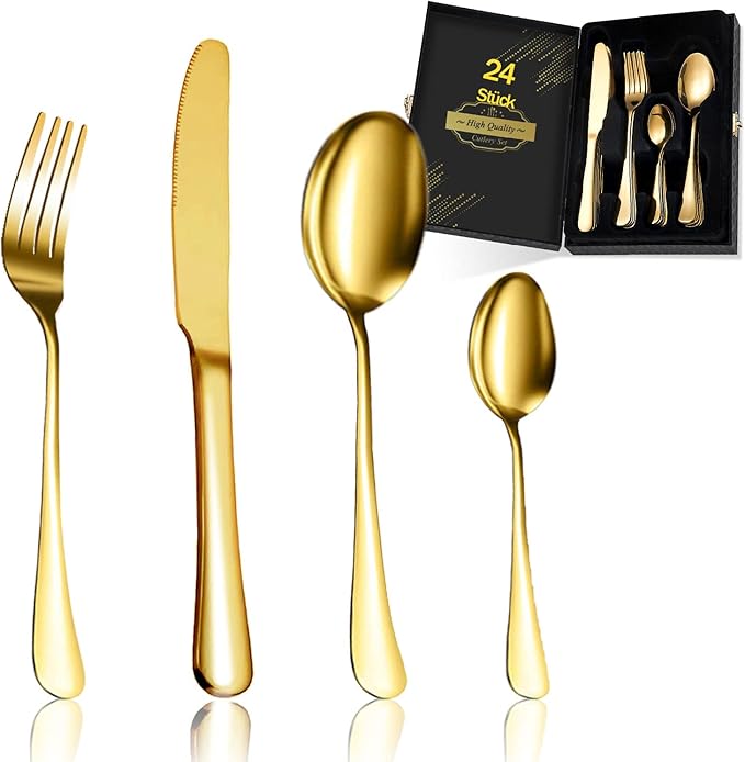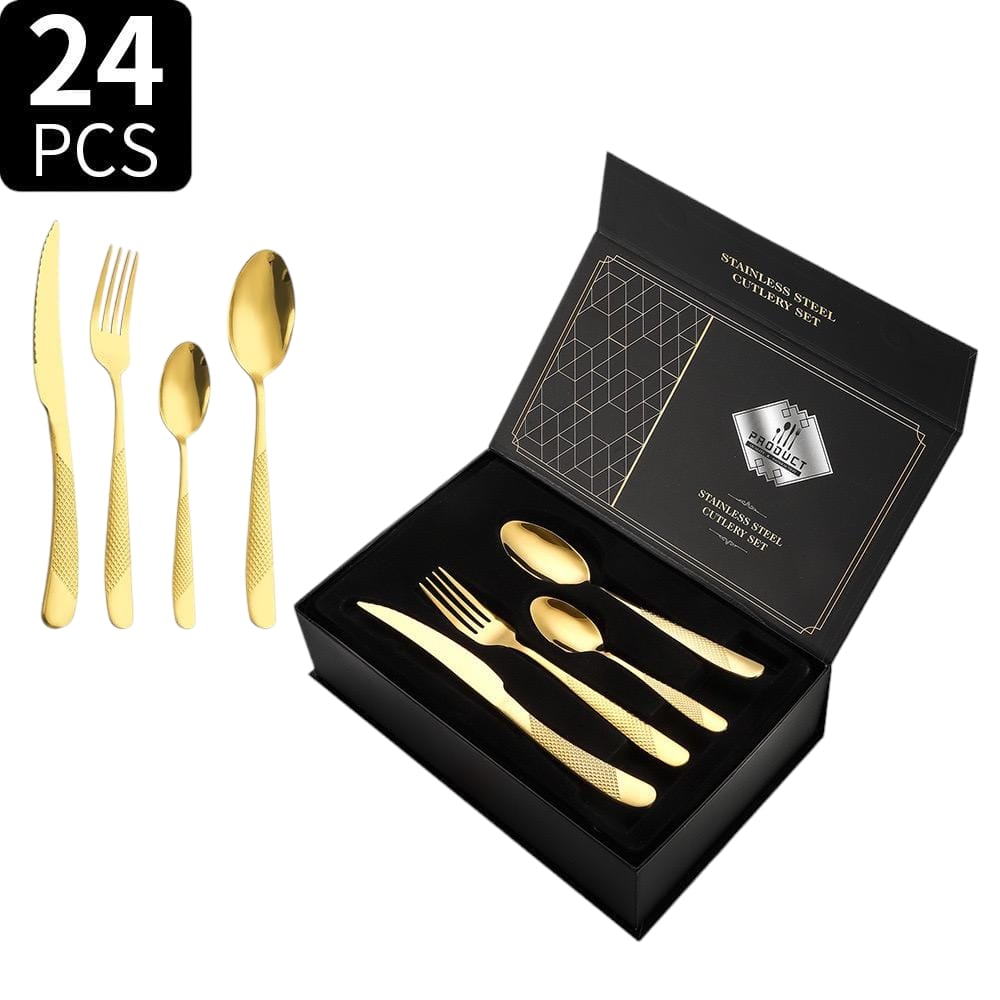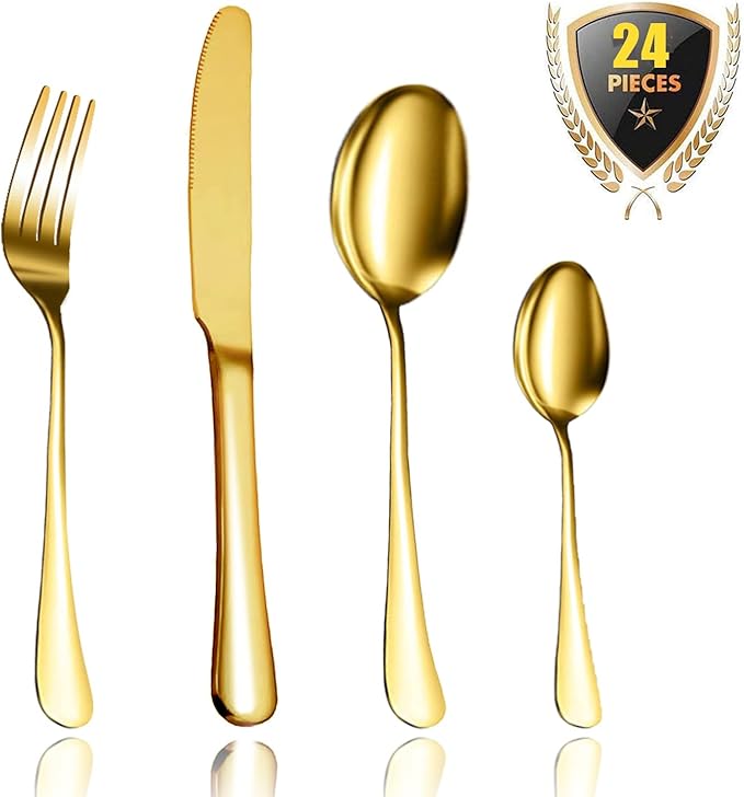طقم أدوات مائدة 24 قطعة من الفولاذ المقاوم للصدأ باللونين الذهبي والفضي الجديد