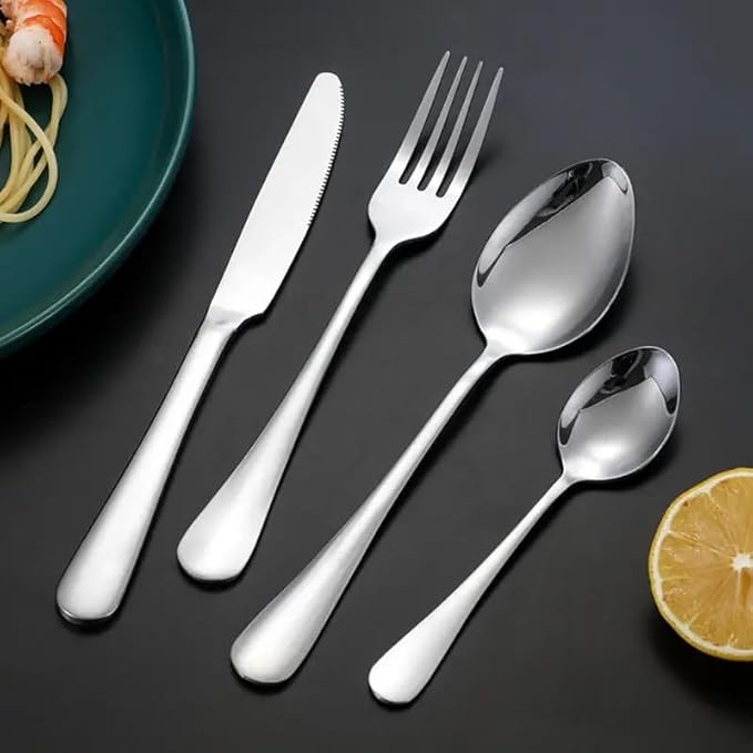 | المكونات المضمنة | 6 قطع سكين (9 بوصة)، 6 قطع شوكة (8.1 بوصة)، 6 قطع ملعقة (8.1 بوصة)، 6 قطع ملعقة (5.3 بوصة) |
