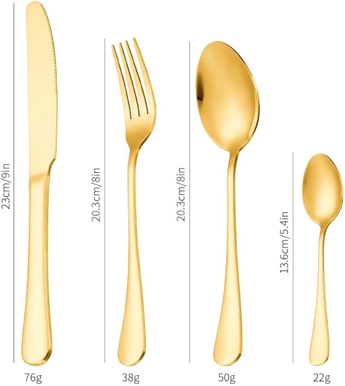 - 🍽️【مجموعة أدوات مائدة مكونة من 24 قطعة】6 شوك عشاء (20.5 سم)، و6 ملاعق عشاء (20 سم)، و6 سكاكين عشاء (22.5 سم)، و6 ملاعق سلطة (13.5 سم)، مع صندوق هدايا معبأ بشكل جميل للتخزين. مناسبة للعشاء والحفلات وحفلات الزفاف والمآدب، إلخ.