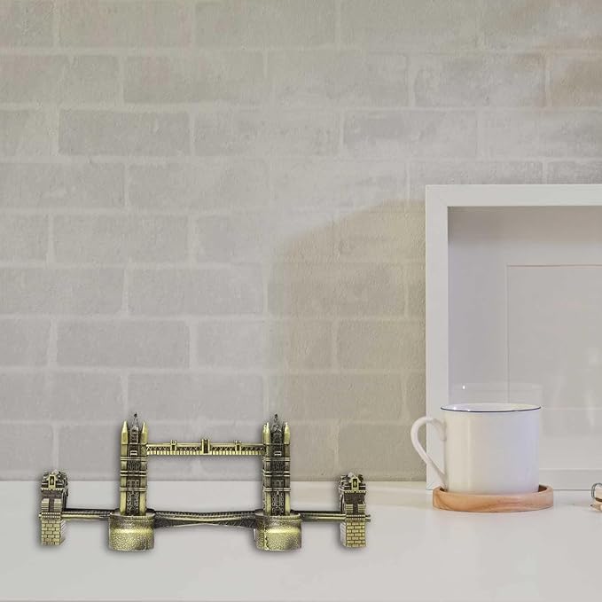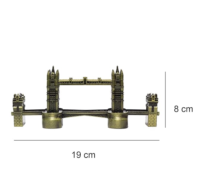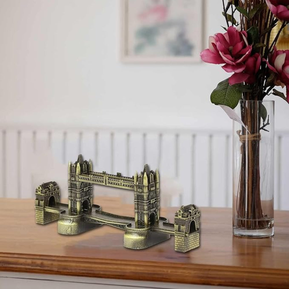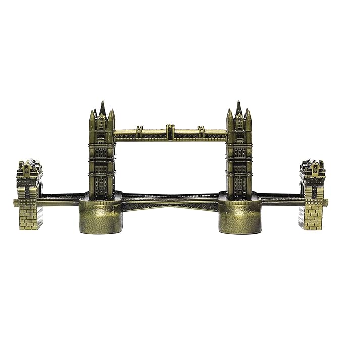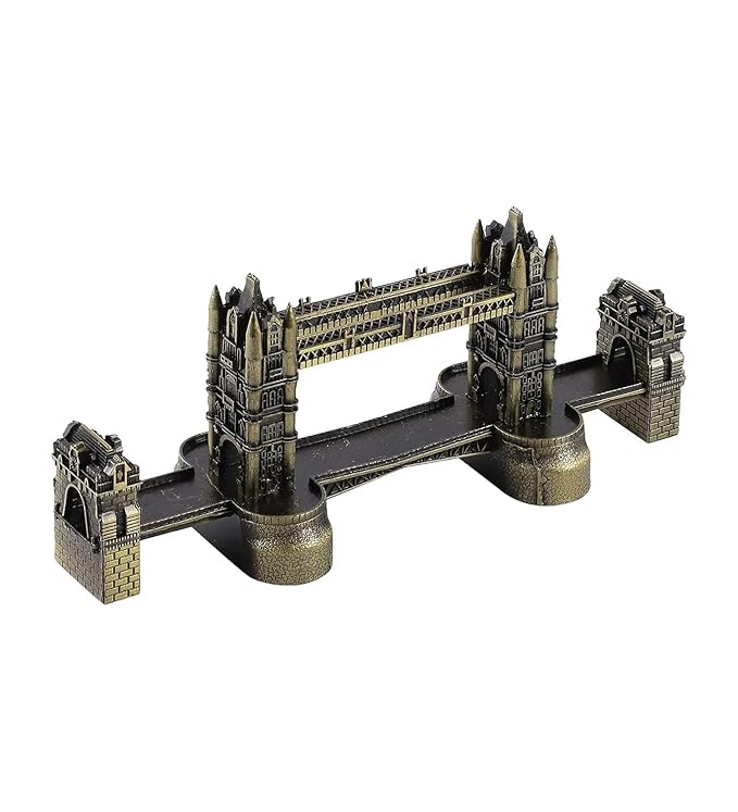 مصنوع من المعدن، هذه النسخة الدقيقة من جسر لندن الشهير في مدينة لندن تتميز بتفاصيل معقدة ودقيقة.